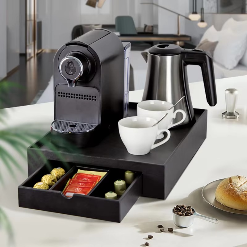 Elegant Capsule Coffee Maker Set Hospitality Tray Tea Bags Coffee Machines Welcome Trays Kettles Service Trays