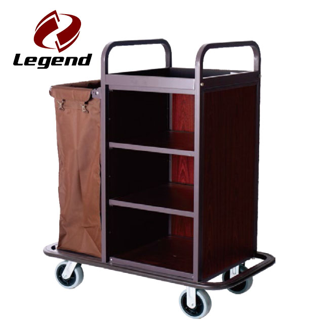 Single-Size Housekeeping Cart made from strong metal wooden board and single bag.